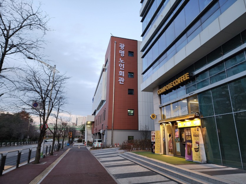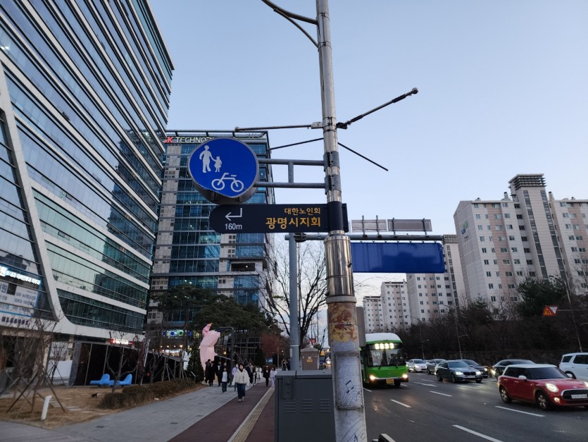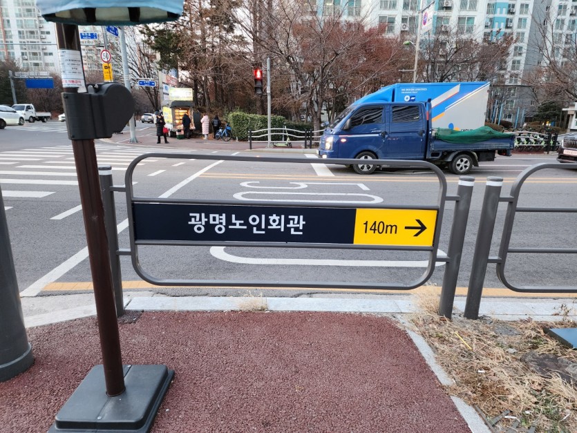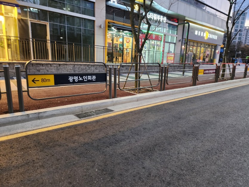 [외벽사인, 방향지시판] 광명노인회관 외벽간판 및 펜스 방향지시판 제작설치
